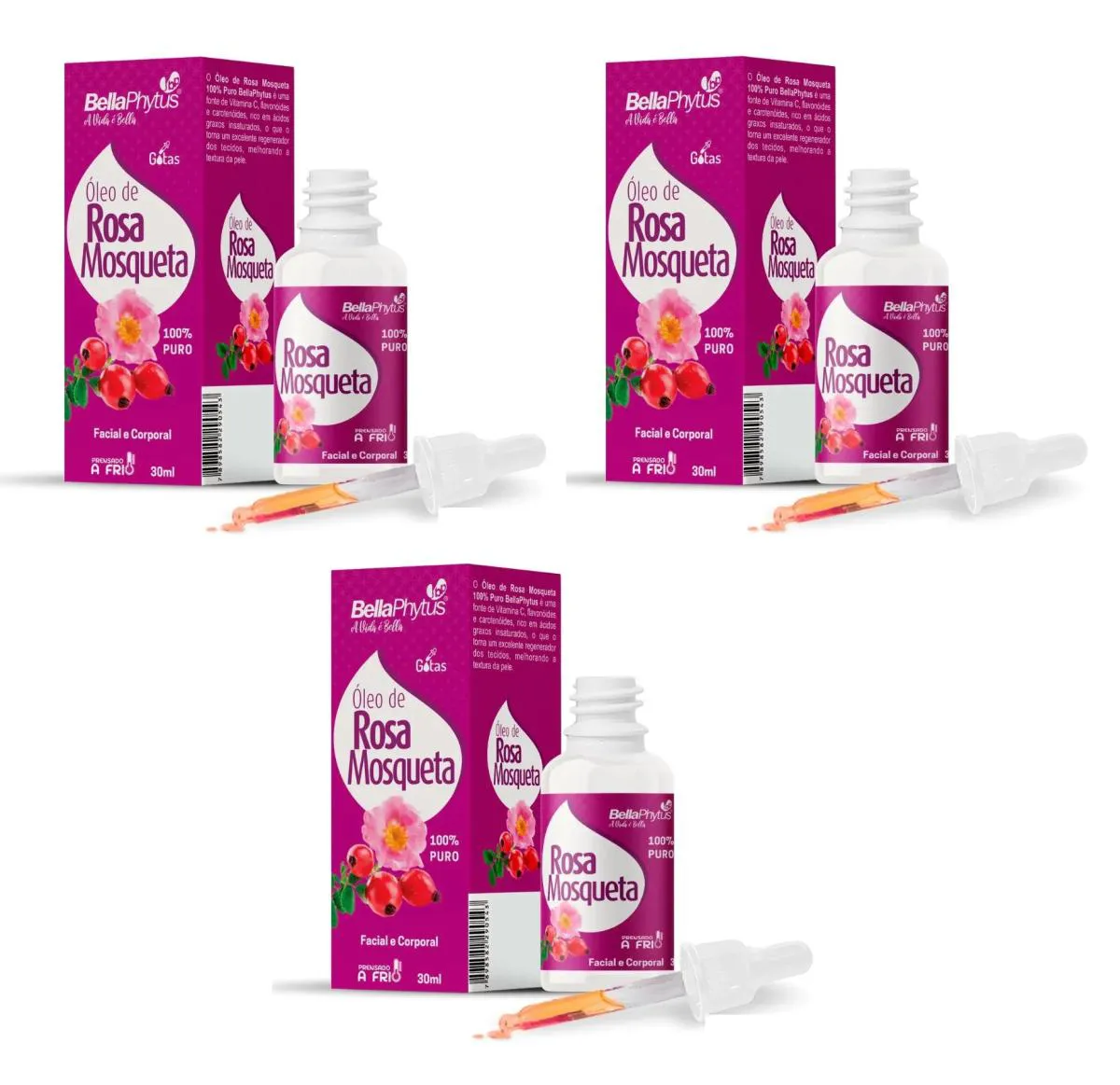 Kit 3 Óleo de Rosa Mosqueta 100% Puro Bellaphytus 30Ml