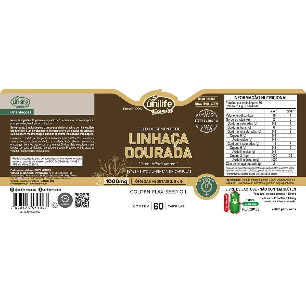 Cada cápsula contém 1.000mg de óleo de linhaça dourada!
