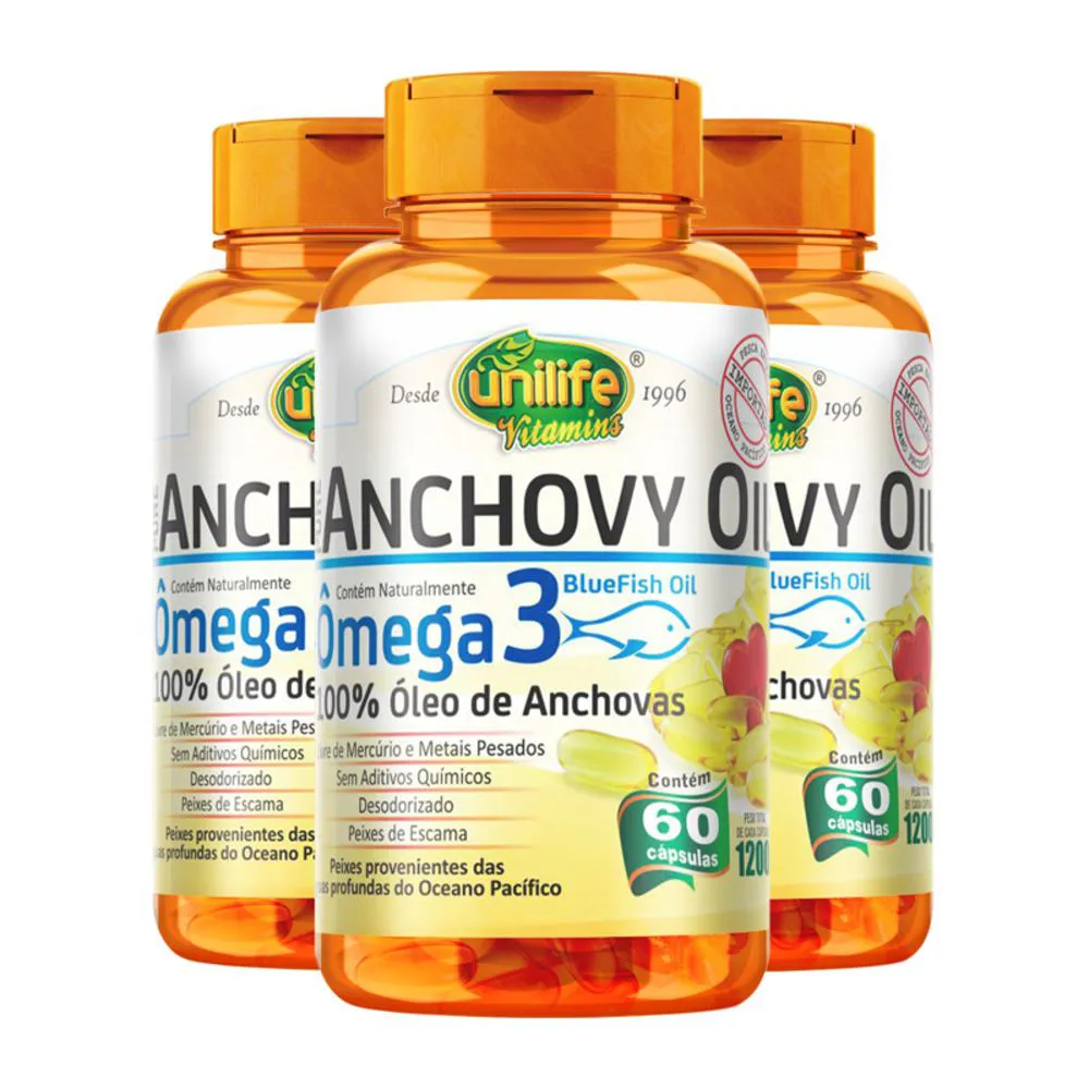 Kit 3 Ômega 3 Óleo de Anchovas Unilife 60 Cápsulas