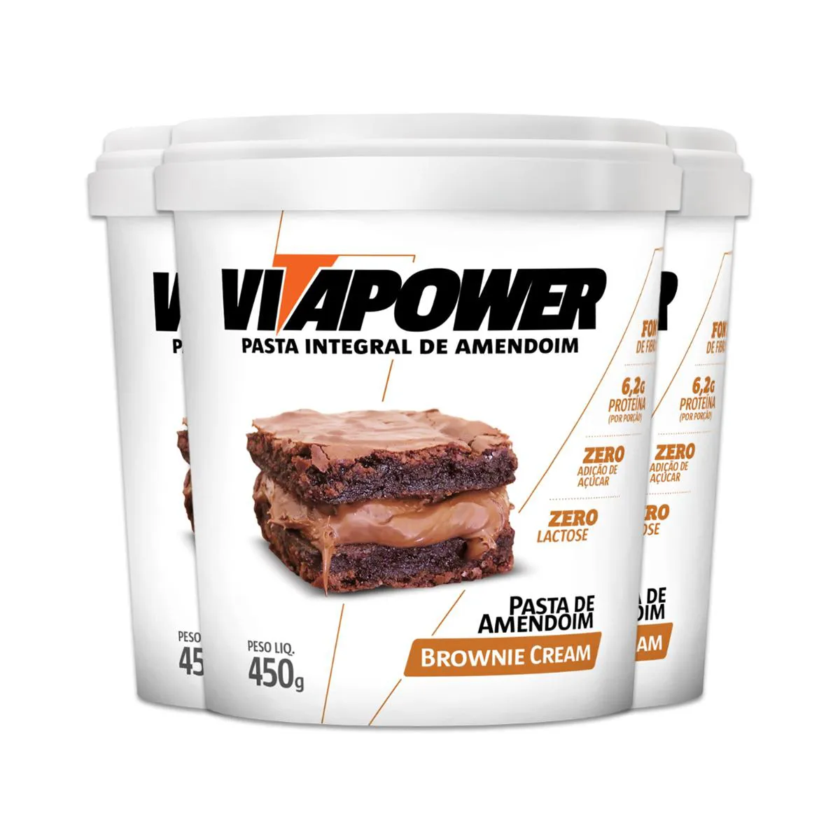 Kit 3 Pasta de Amendoim Vitapower Brownie e Cream 450G
