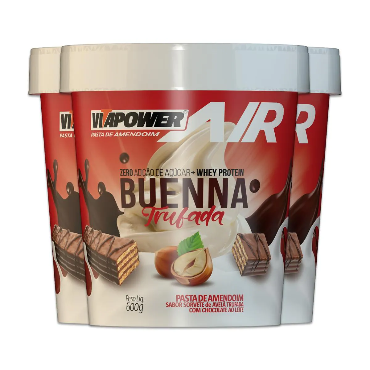 Kit 3 Pasta de Amendoim Vitapower Whey Buenna Trufado 600G