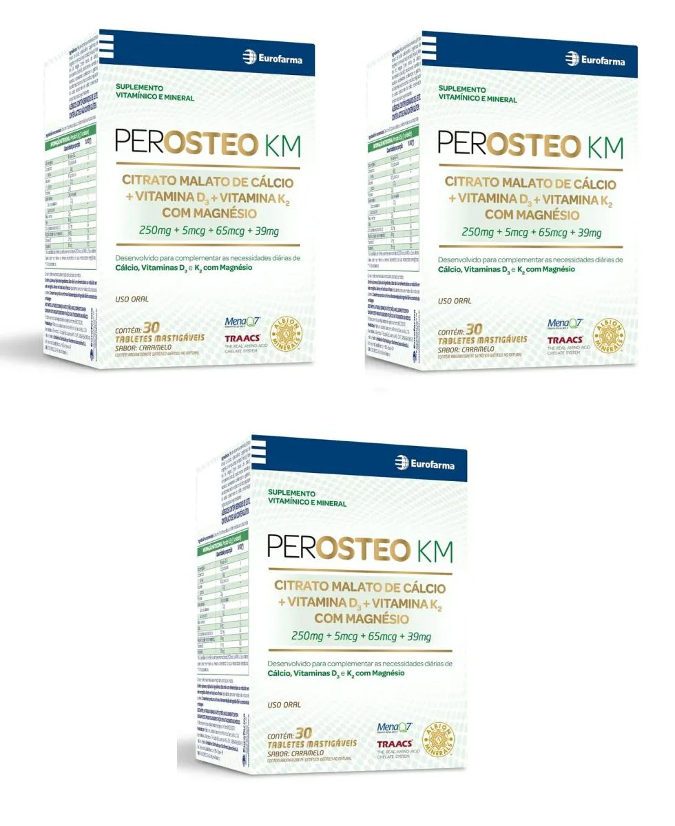 Kit 3 Perosteo Km Sabor Caramelo Eurofarma 30 Mastigáveis