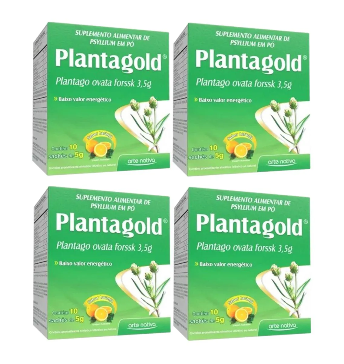 Cada sachê de Plantagold contém 3,5 de Psyllium em pó (Plantago ovata).