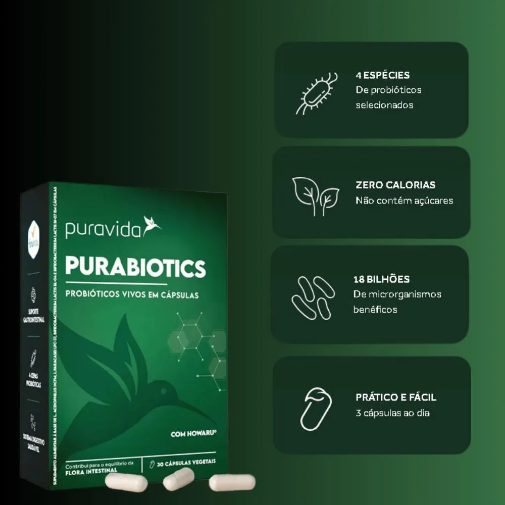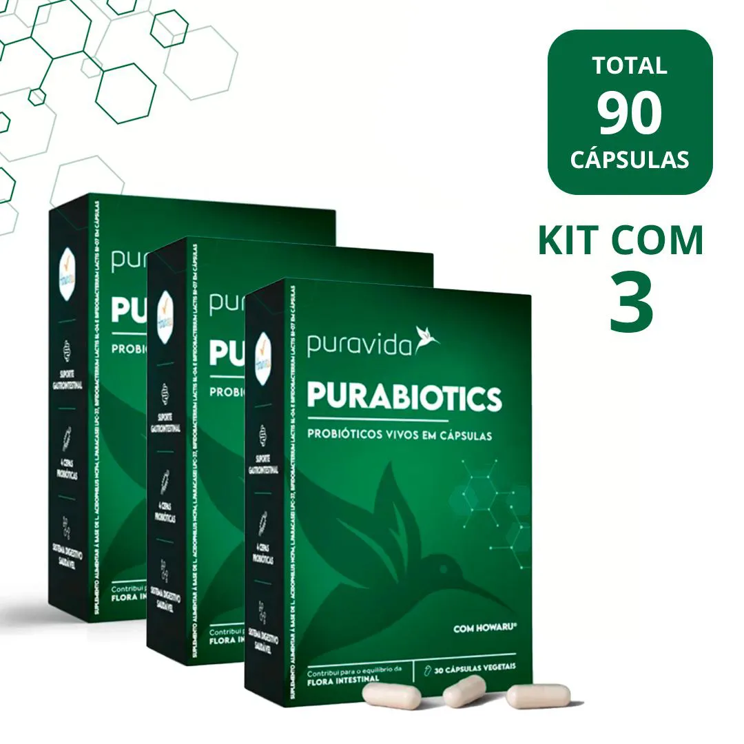 Kit 3 Suplemento Purabiotics probióticos Vivos com 30 cápsulas – Puravida