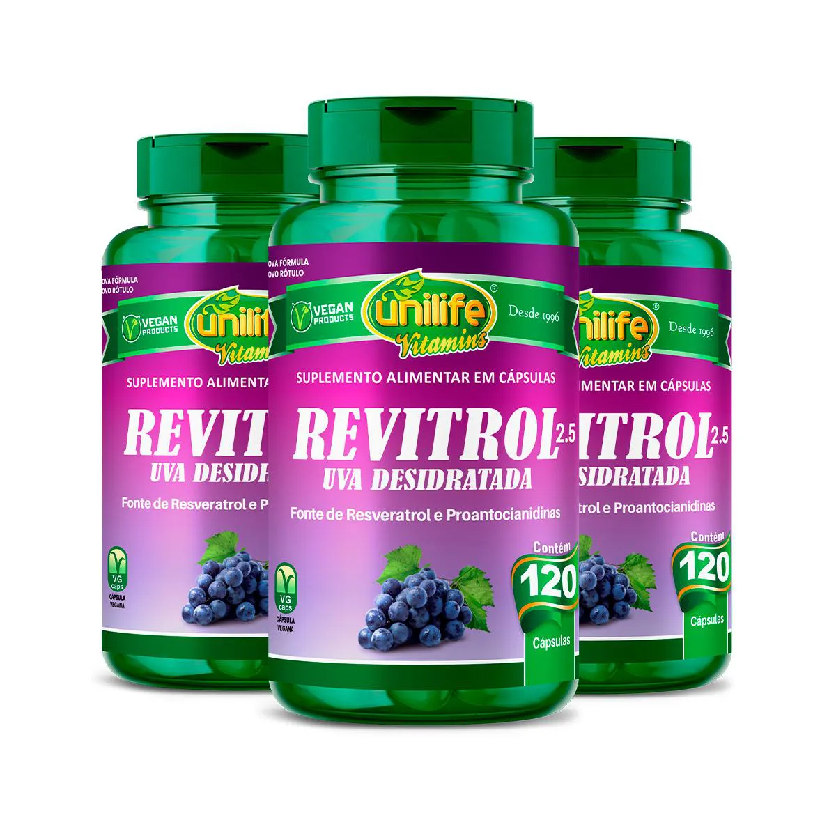 Kit 3 Revitrol Uva Desidratada 2.5 Unilife 120 Cápsulas