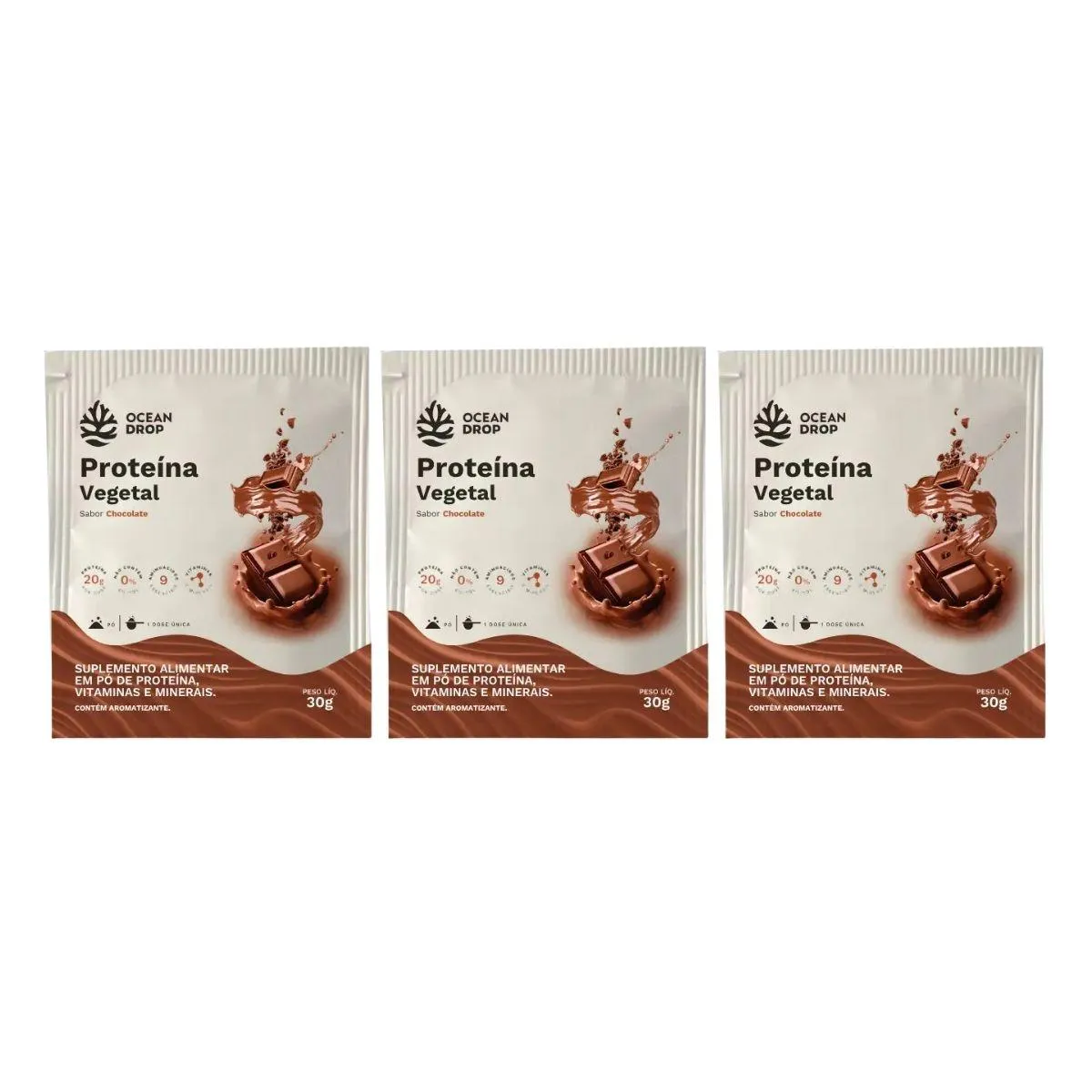 Kit 3 Sache Proteina Vegetal 20G Proteina Chocolate 30G Vegano Ocean Drop