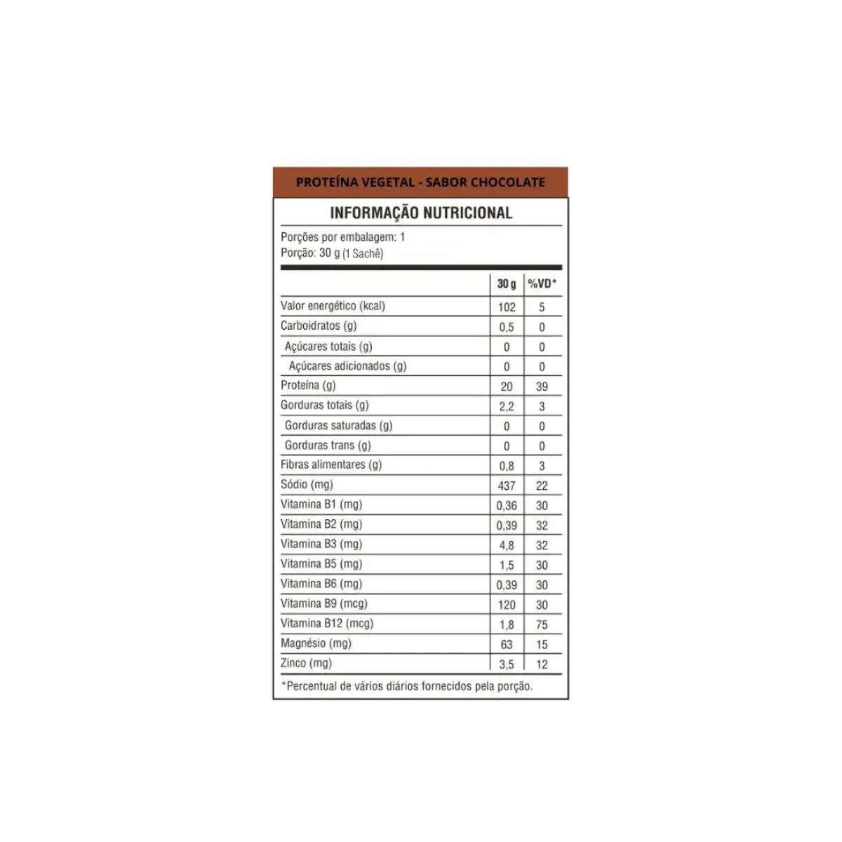 O produto é um sachê de proteína vegetal em pó sabor chocolate, formulado com 20g de proteína por dose. Serve para fornecer nutrição completa, suporte muscular e energia, sendo ideal para atletas, pessoas em dietas restritivas e que buscam um complemento nutricional prático. Desenvolvido com proteína de ervilha, farinha de amêndoa e cacau, o sachê oferece um perfil completo de 9 aminoácidos essenciais, podendo ser facilmente diluído em água ou bebida vegetal.