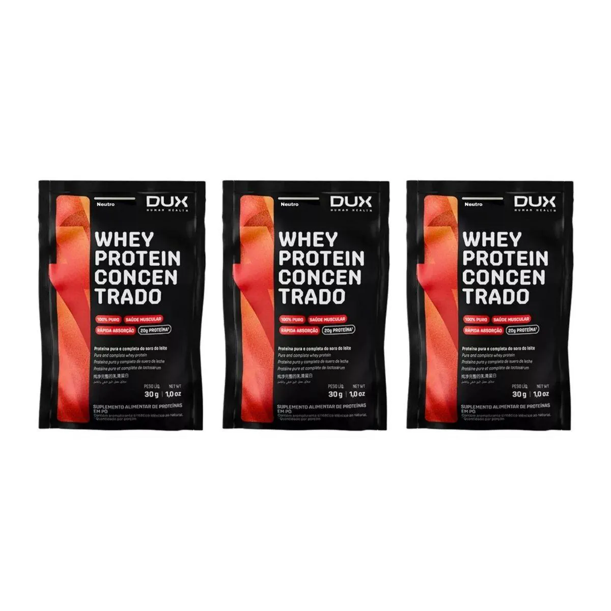 Kit 3 Sache Whey Protein 20G Proteina Concentrado Alta Absorção Neutro Dux
