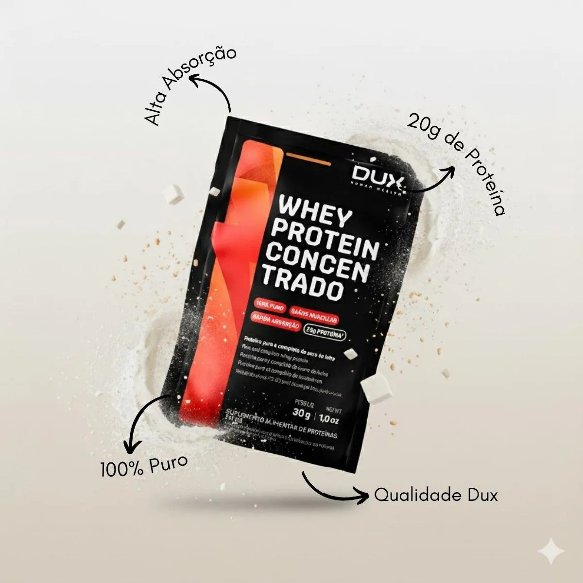 O Whey Protein Concentrado DUX é um suplemento proteico neutro extraído do soro do leite, composto por 20g de proteína pura por porção. É um produto versátil e de alta absorção, desenvolvido para auxiliar na nutrição e no desempenho físico.