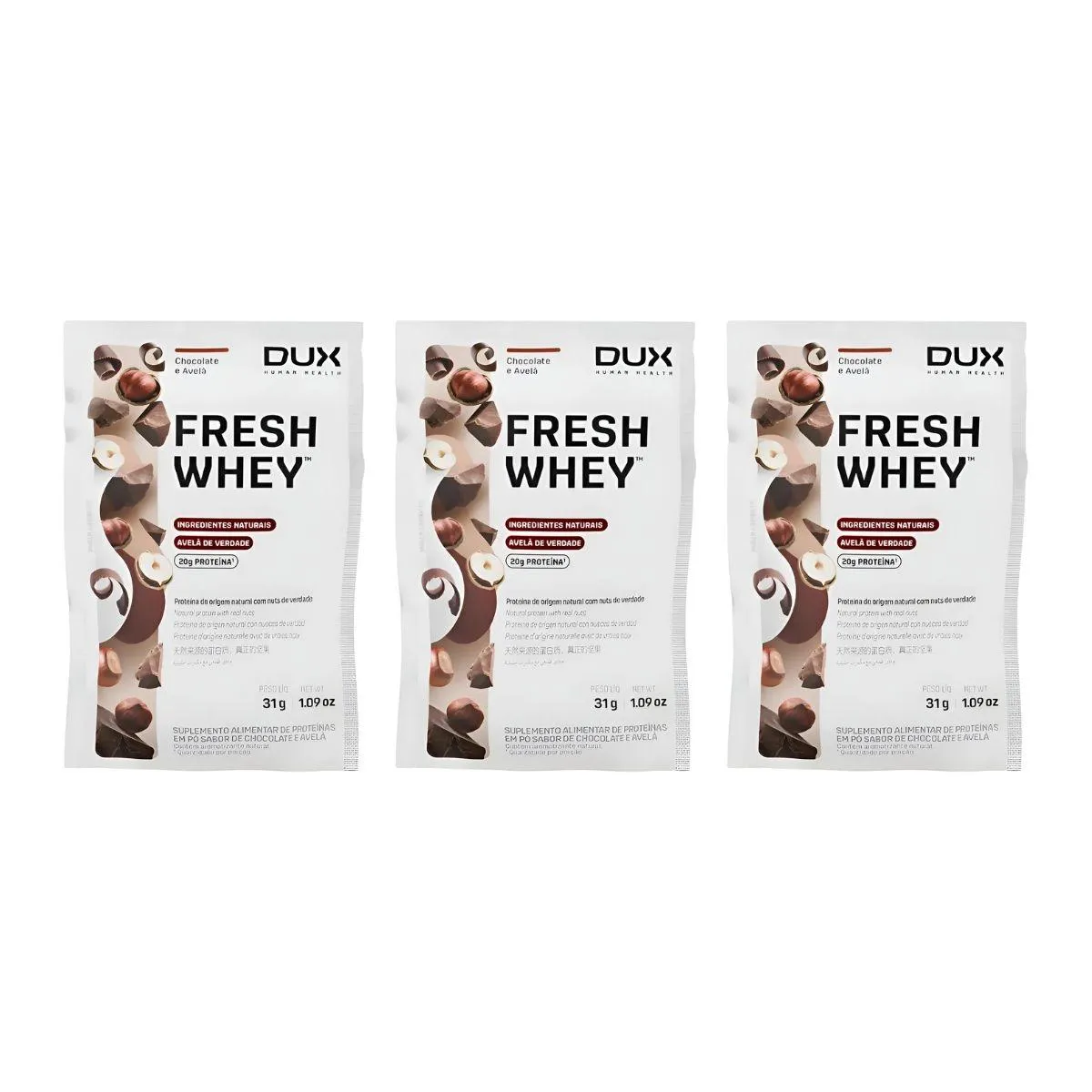 Kit 3 Sache Whey Protein Fresh 20G Prot 3W Chocolate Belga e Avela Dux