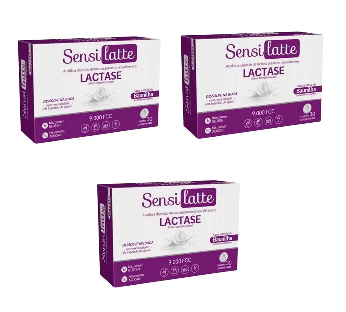 Kit 3 Sensilatte Lactase 9000fcc Baunilha 30Cpr - Prati