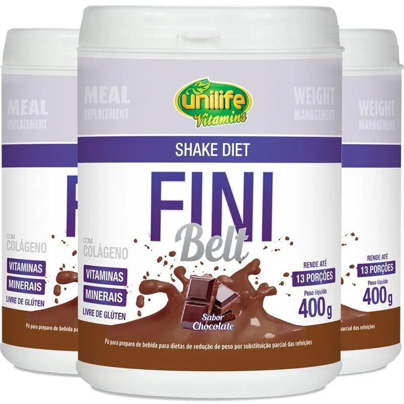 Kit 3 Shake Diet com Colágeno Fini Belt Unilife 400G Chocolate