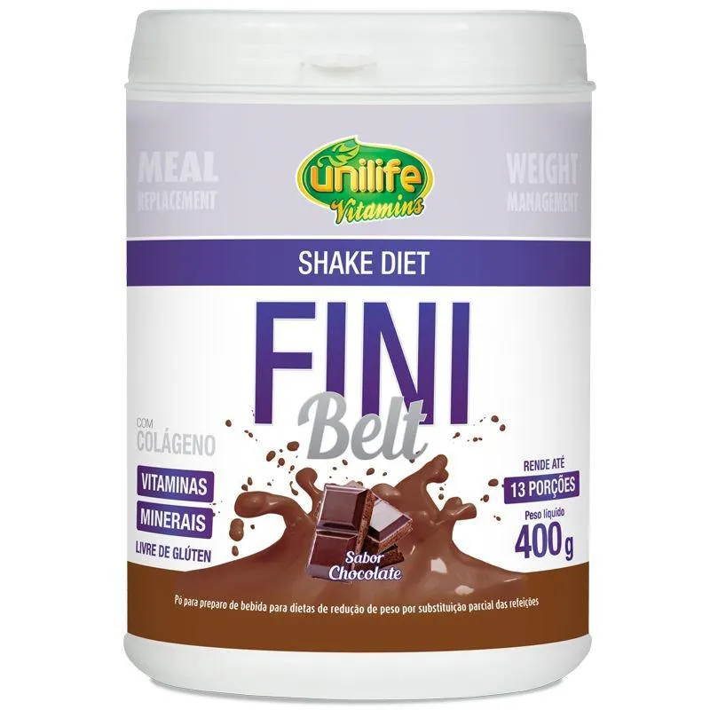 Shake Dieti Fini Belt Unilife com Colágeno, é um pó para preparo de bebida para dietas de redução de peso por substituição parcial das refeições. O colágeno é uma proteína que representa 25% de toda proteína do corpo humano. Ele tem a função estrutural de manter a sustentação das células. Possui Colágeno Hidrolisado, encontrado principalemente nas carnes vermelhas, frango e peixe. Auxilia no emagrecimento, deixa a pele mais firme, e protege os ossos e as articulações. Foi elaborado com proteínas de alto valor biológico, rico em vitaminas e minerais e ainda possui todos os aminoácidos essenciais para boa saúde que outros shakes diet não possuem! Como preparar Shake Diet Fini Belt