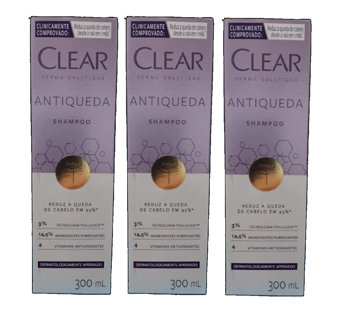 Kit 3 Shampoo Clear Derma Solutios Antiqueda 300Ml