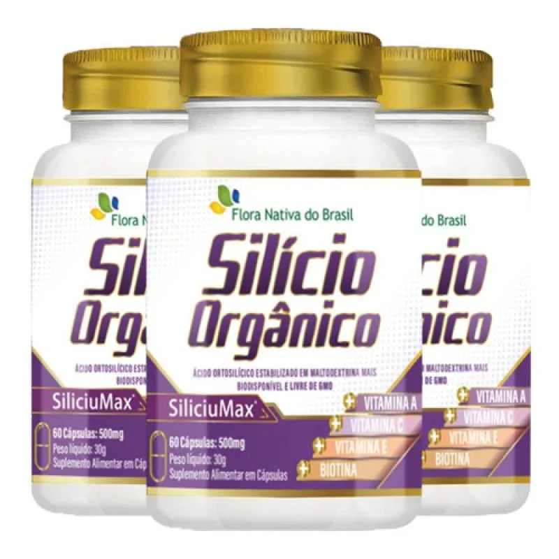 Kit 3 Silicio Organico e Vitaminas 500 Mg 60 Capsulas - Flora Nativa A