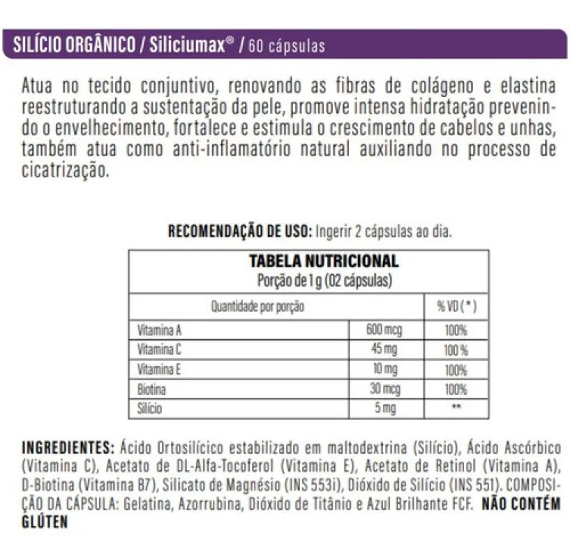 - Suplementação prática e eficiente de silício e vitaminas essenciais.