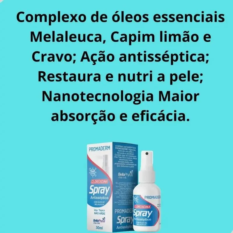 Spray de propriedades antissépticas. Apresentado em embalagem com um frasco de 30ml de conteúdo, sendo um produto de uso tópico.