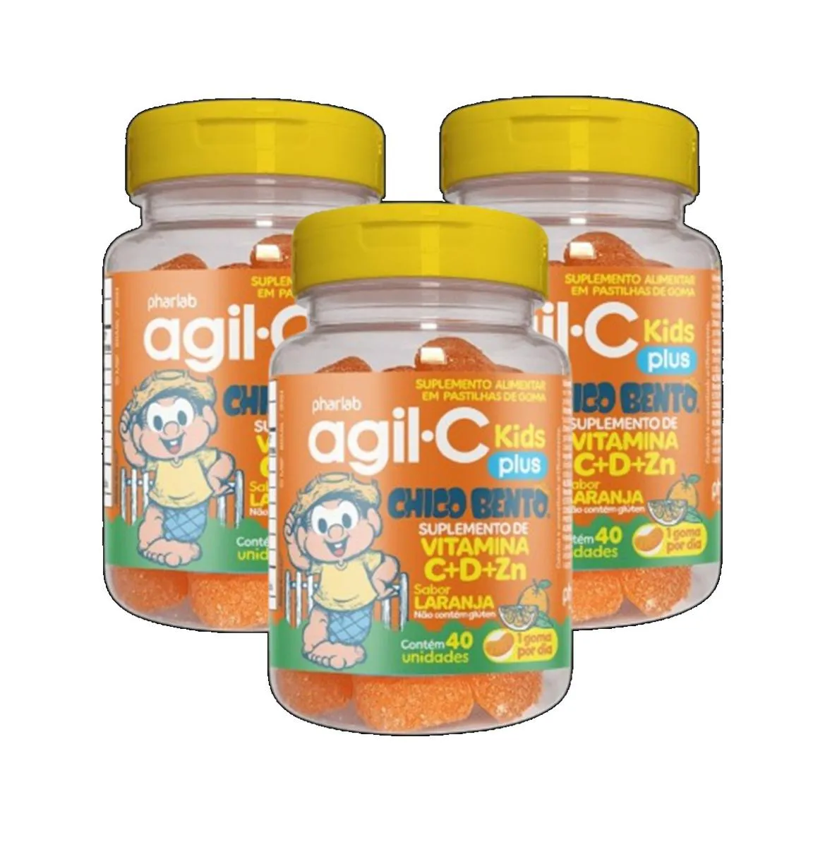 Kit 3 Suplemento Agil-C Kids Plus Vitamina C+D+Zn 40 Gomas
