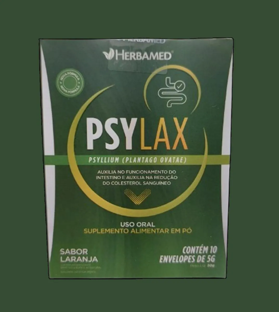O Psylax Herbamed é um suplemento alimentar em pó à base de psyllium, apresentado em 10 sachês individuais sabor laranja. Prático para o consumo diário, basta diluir conforme orientação do rótulo. Indicado para uso adulto.