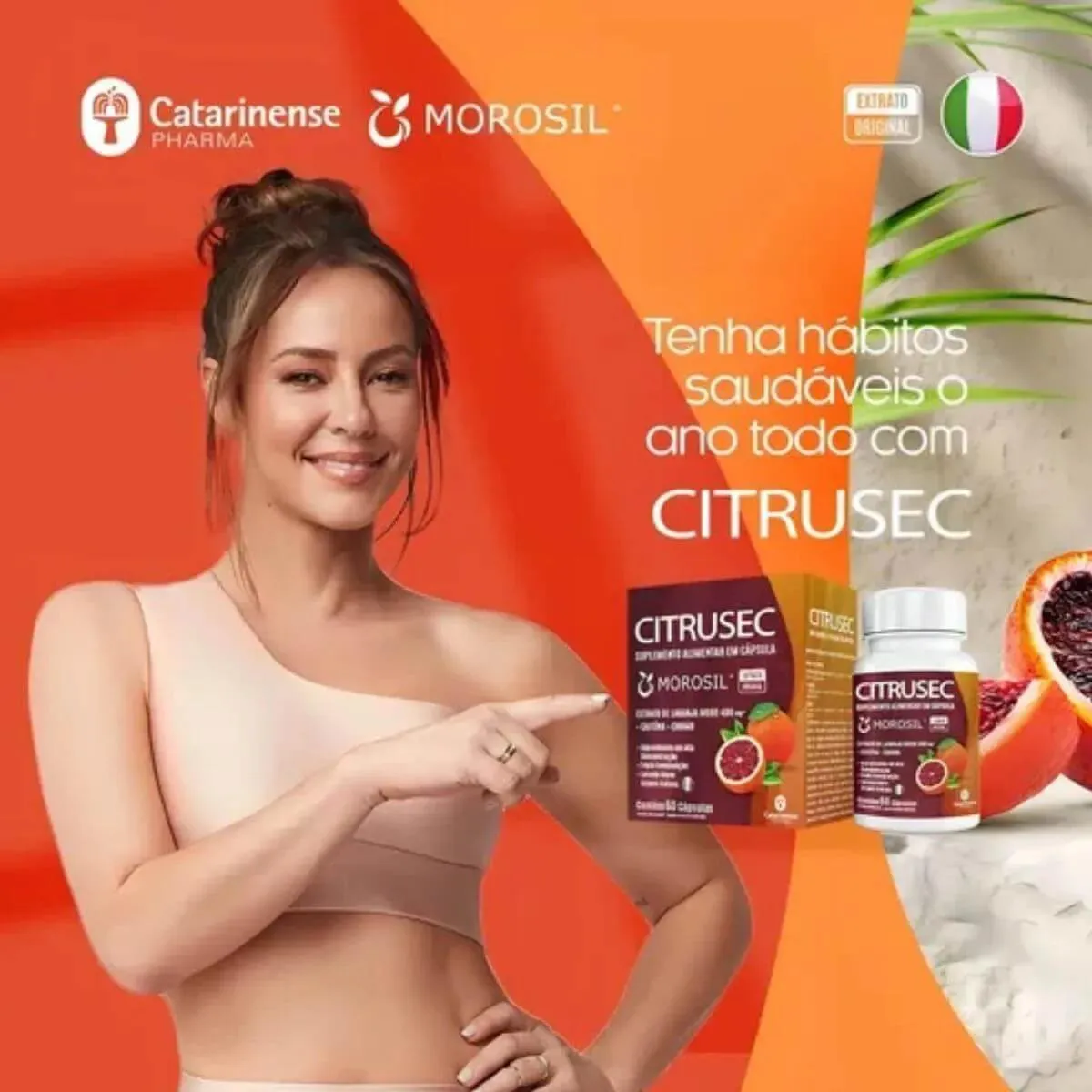 É um suplemento alimentar em cápsulas, obtido a partir do extrato de laranjas vermelhas Moro, combinado com cafeína e cromo, desenvolvido para complementar a nutrição e apoiar a qualidade de vida. Composto por Extrato de Laranja Moro, Cafeína e Picolinato de Cromo, o suplemento visa preencher possíveis lacunas nutricionais no organismo.