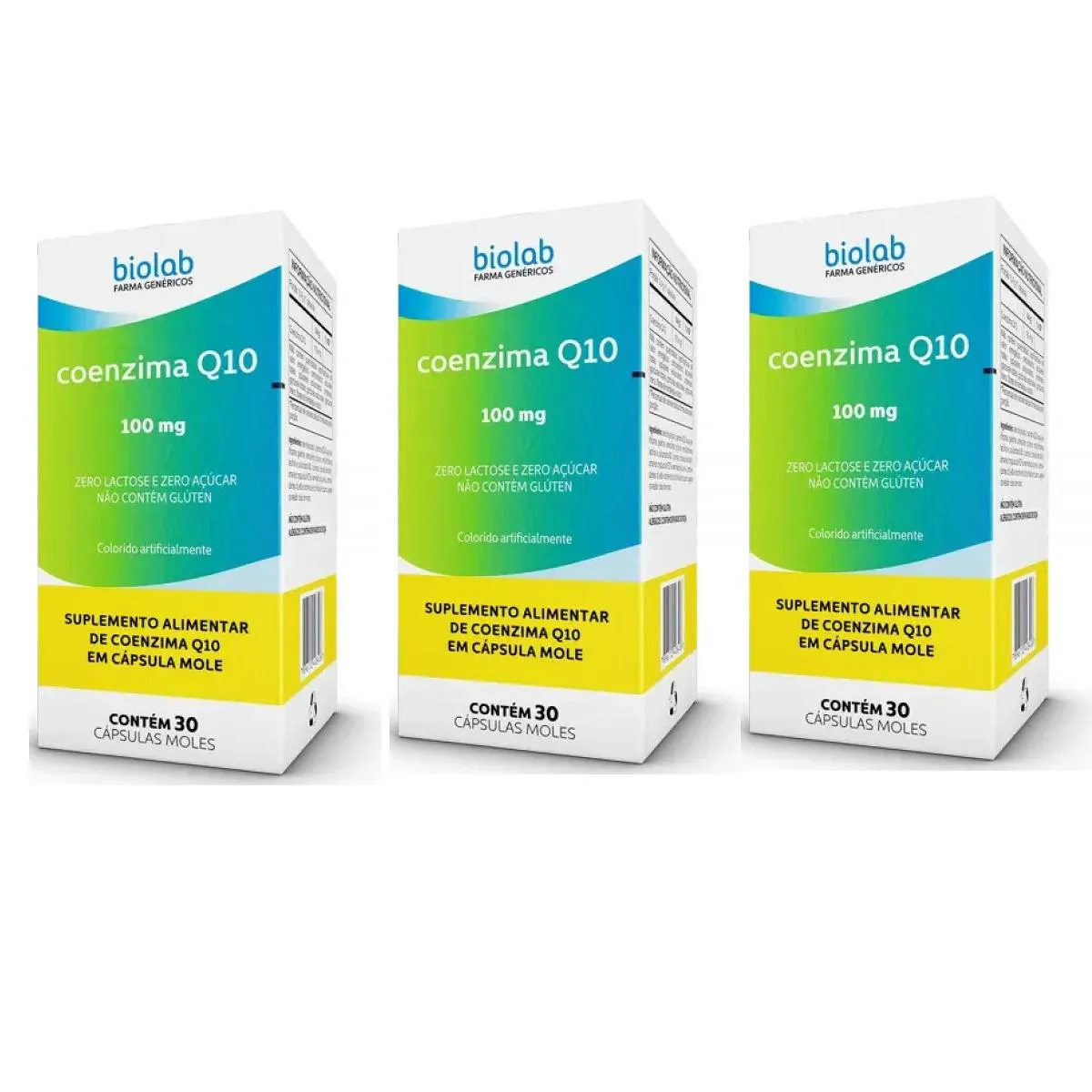 Kit 3 Suplemento Coenzima Q10 100mg Com 30 Cápsulas Biolab
