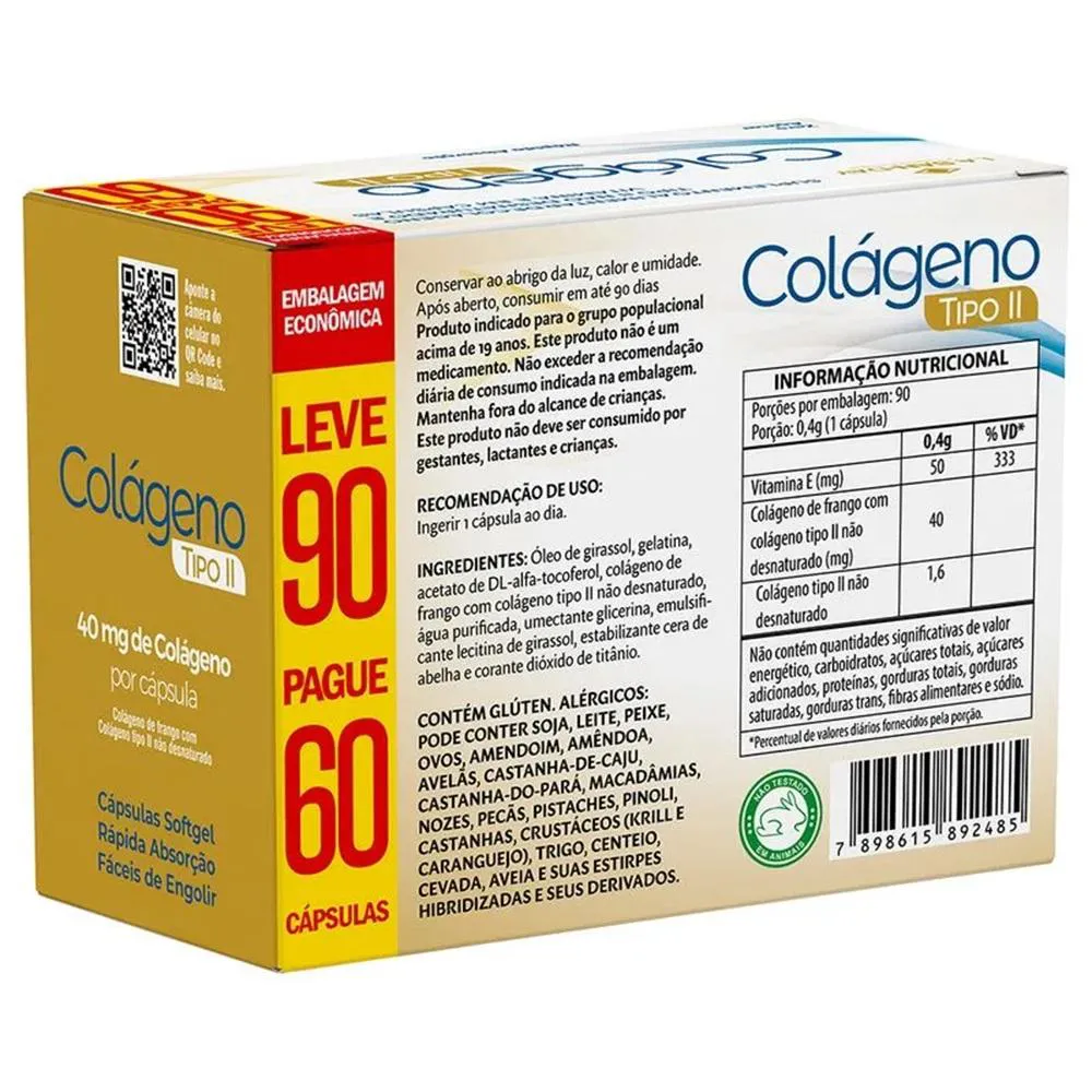 O produto é um suplemento de colágeno tipo 2 não desnaturado, composto por cápsulas que contêm óleo de girassol, vitamina E e colágeno tipo 2. Serve para auxiliar no tratamento de doenças articulares autoimunes, como osteoartrite, artrite reumatoide e inflamações de articulações, ajudando a repor o colágeno perdido nas cartilagens, reduzir a inflamação e melhorar a saúde das articulações.