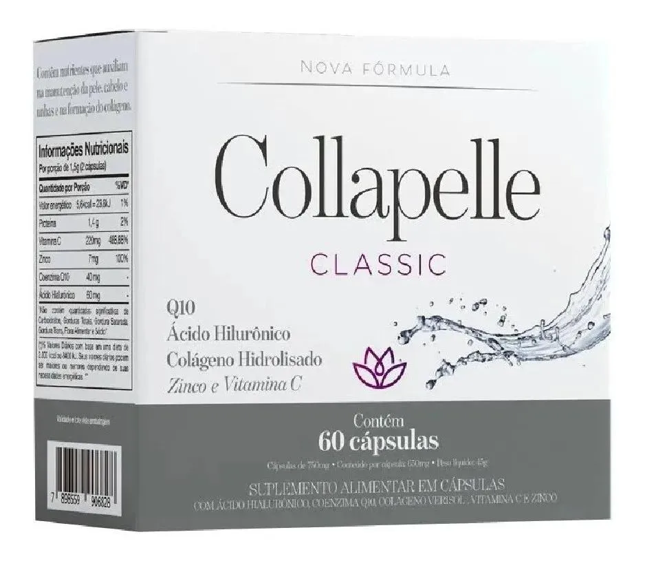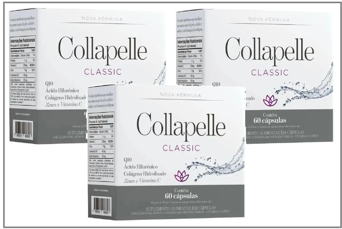 Collapelle Classic é um suplemento alimentar que contém nutrientes que auxiliam na manutenção da pele, cabelo e unhas e na formação do colágeno.