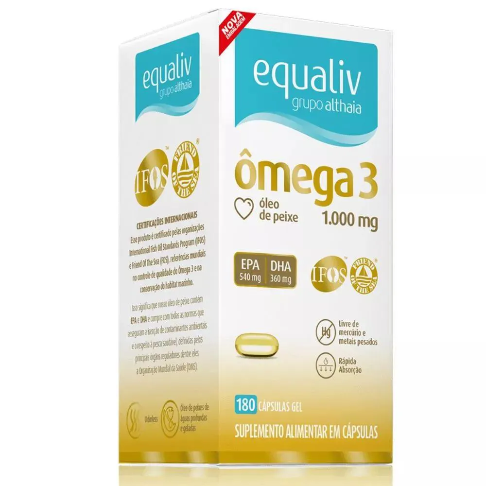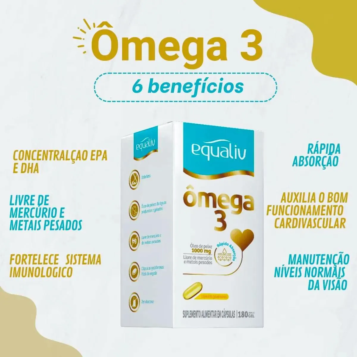O Suplemento Alimentar Ômega 3 Equaliv é à base de óleo de peixe, rico em EPA e DHA (também presente em vários alimentos como frutos-do-mar, nozes, sementes, óleos vegetais e produtos fortificados).