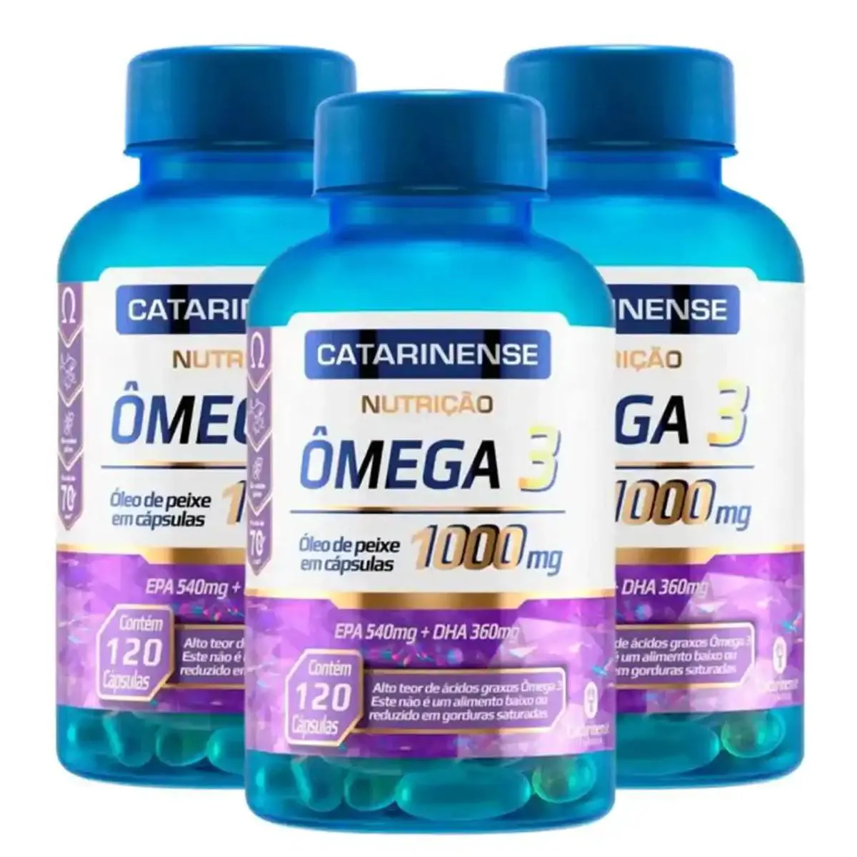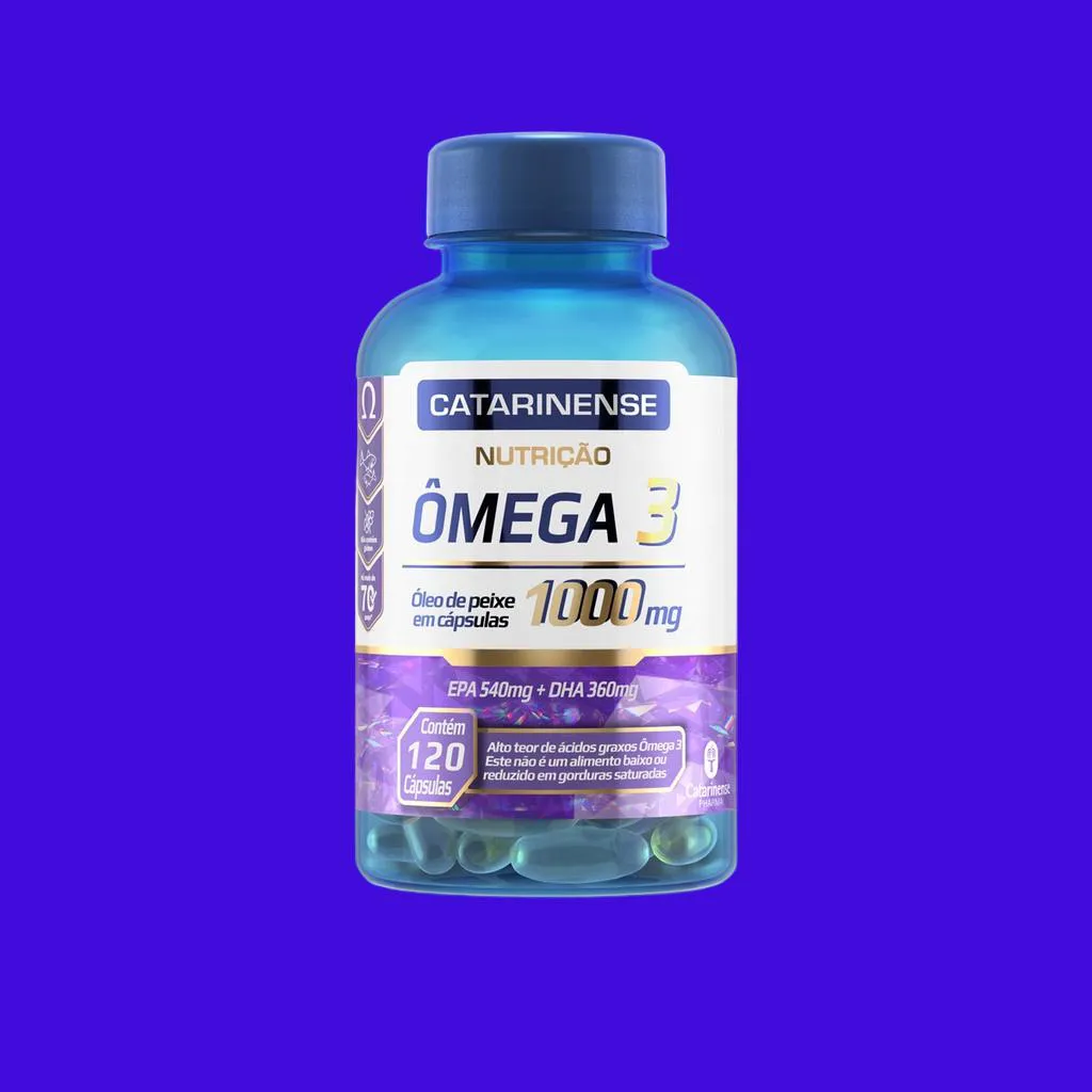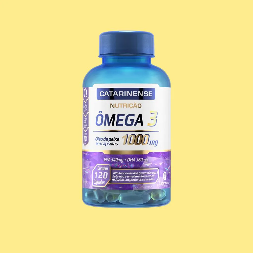 Kit 3 Suplemento Ômega 3 1000mg 120 Cps Catarinense O ômega 3 mais vendido do Brasil* é fabricado pelo Catarinense Pharma. Sua fórmula possui 1000mg de óleo de peixe, sendo que em três cápsulas contém 540mg EPA e 360mg DHA. O consumo de ácidos graxos ômega 3 auxilia na manutenção de níveis saudáveis de triglicerídeos, desde que associado a uma alimentação equilibrada e hábitos de vida saudáveis. Alto teor de ácidos graxos ômega 3. Ingredientes: Óleo de peixe. Gelificante: gelatina (INS 428). Umectante: glicerina (INS 422). Veículo: Água. Recomendações de Uso: 1 cápsula, 3 vezes ao dia, preferencialmente antes das principais refeições. A porção individual (1 cápsula) fornece 1000mg de óleo de peixe. ALÉRGICOS: PODE CONTER DERIVADOS DE SOJA, AMENDOIM E PEIXE. NÃO CONTÉM GLUTEM MANTENHA O PRODUTO FORA DO ALCANCE DE CRIANÇAS Imagens Meramente Ilustrativas. Todas as Informações Divulgadas são de Responsabilidade Exclusiva do Fabricante/fornecedor.