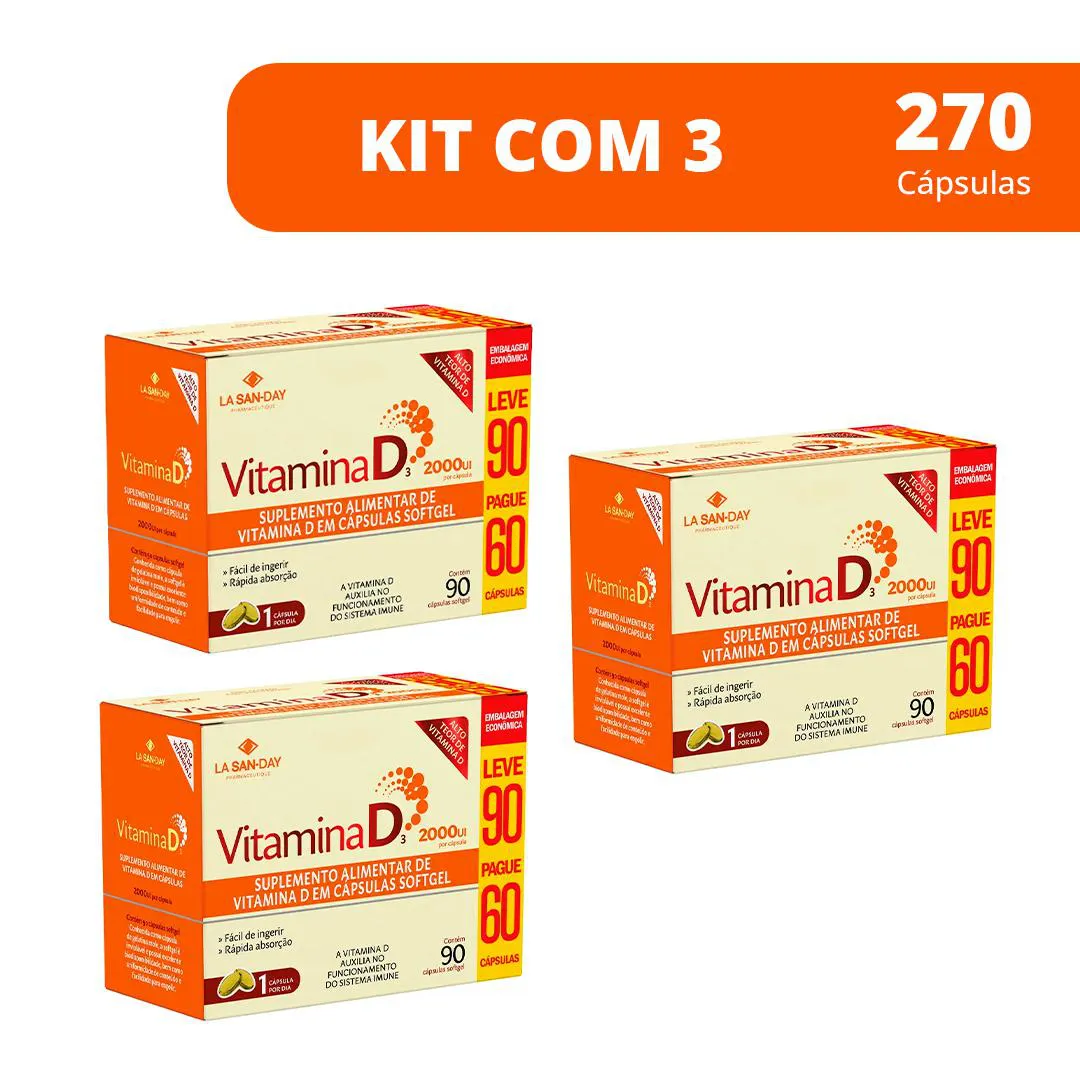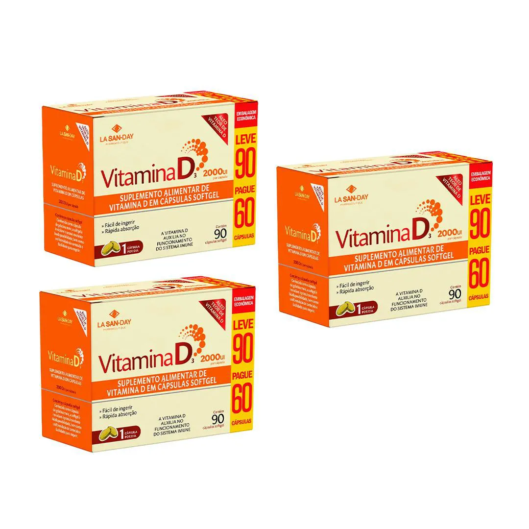 Kit 3 Suplemento Vitamina D3 2000Ui - 90 Caps - La San-Day