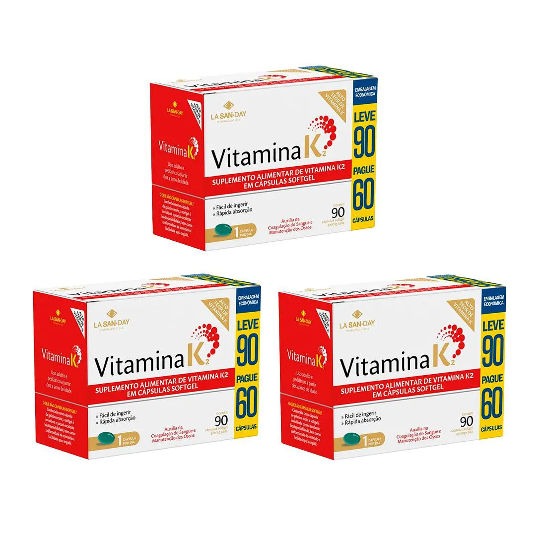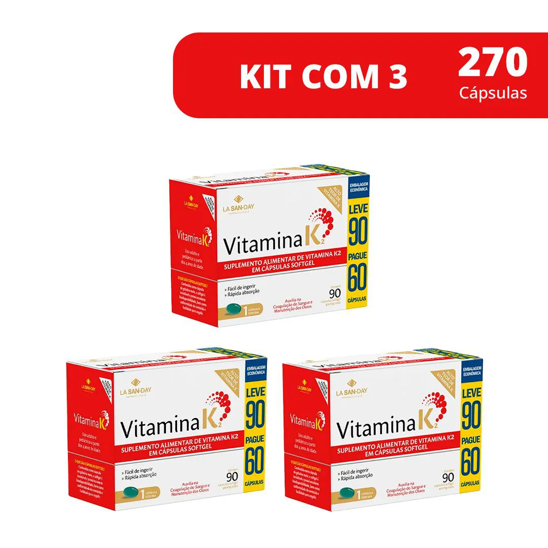 Kit 3 Suplemento Vitamina K2 - 90 Caps - La San-Day
