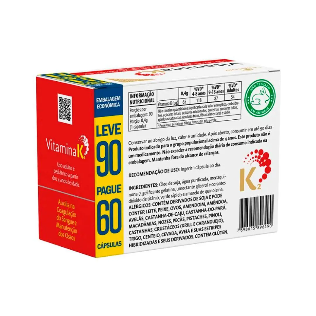 - Ideal para adultos com baixa ingestão alimentar de vitamina K2.