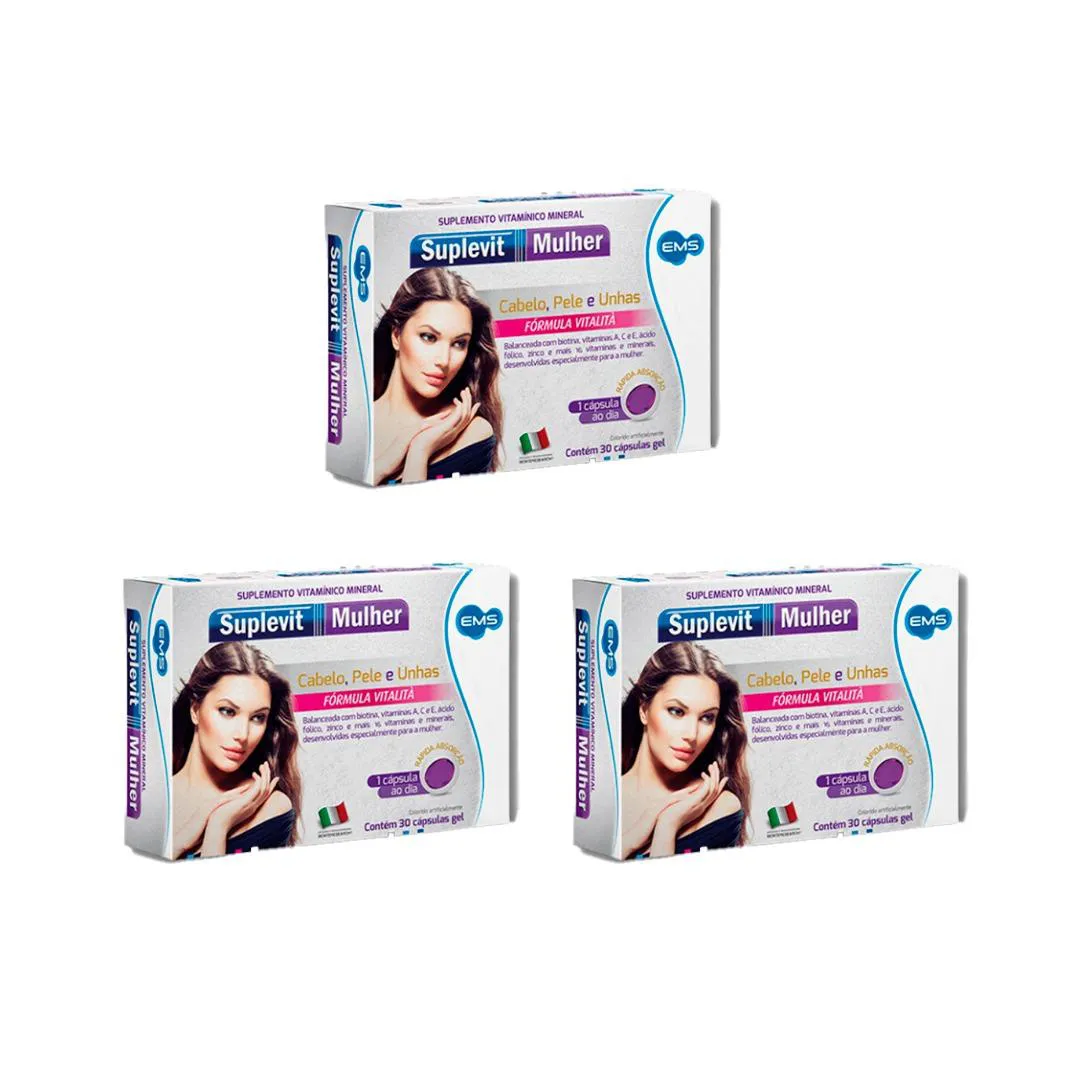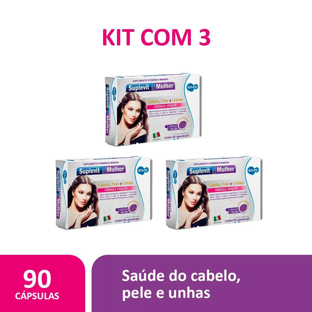 Kit 3 Suplevit Mulher Cabelo Pele e Unhas - 30 Caps – Ems