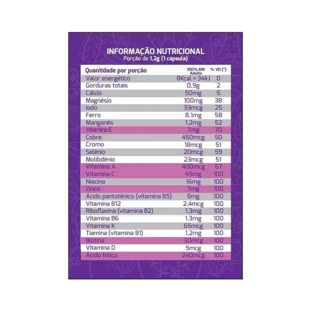 - Fórmula com 23 vitaminas e minerais essenciais.