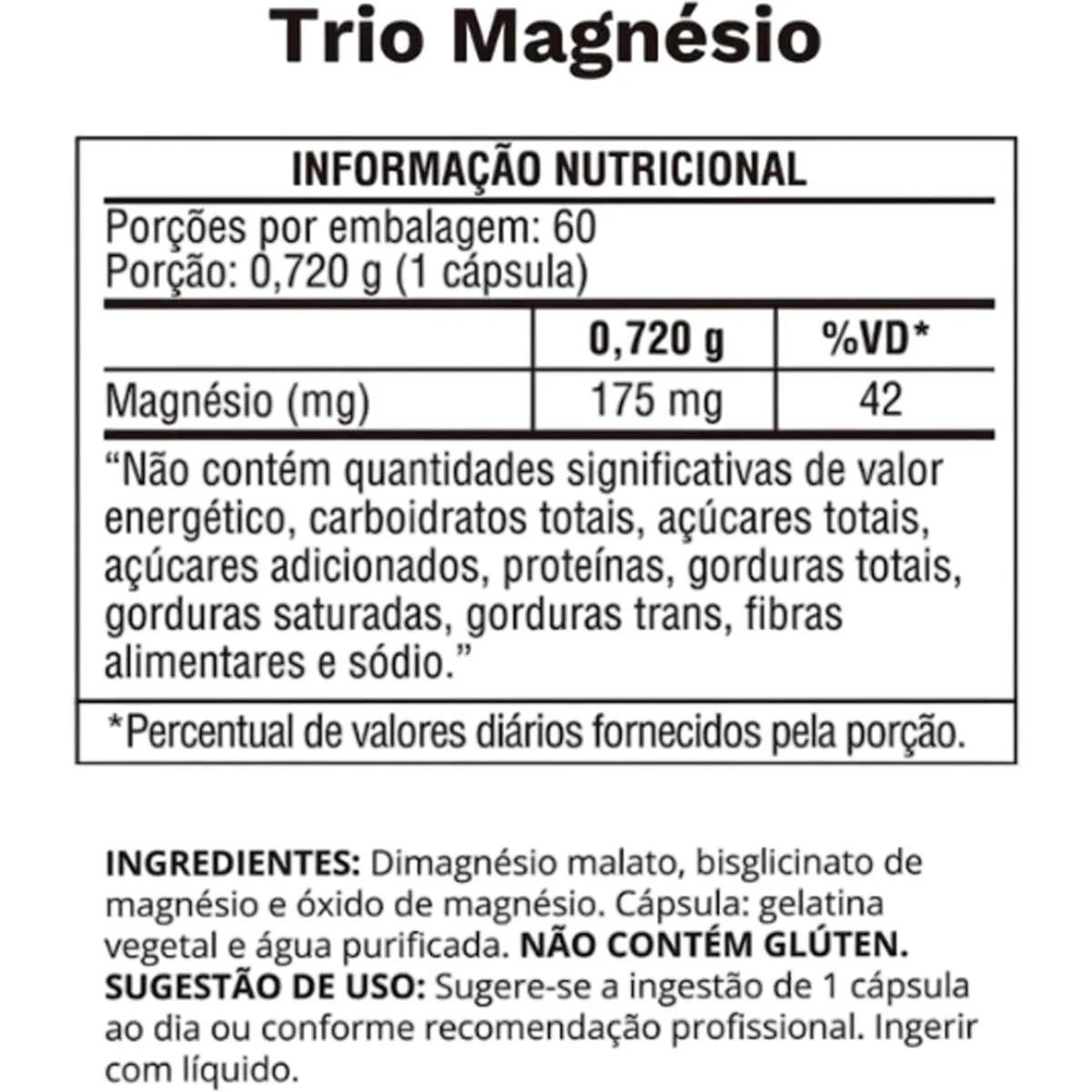 Ingredientes: Bisglicinato de magnésioMagnésio quelato