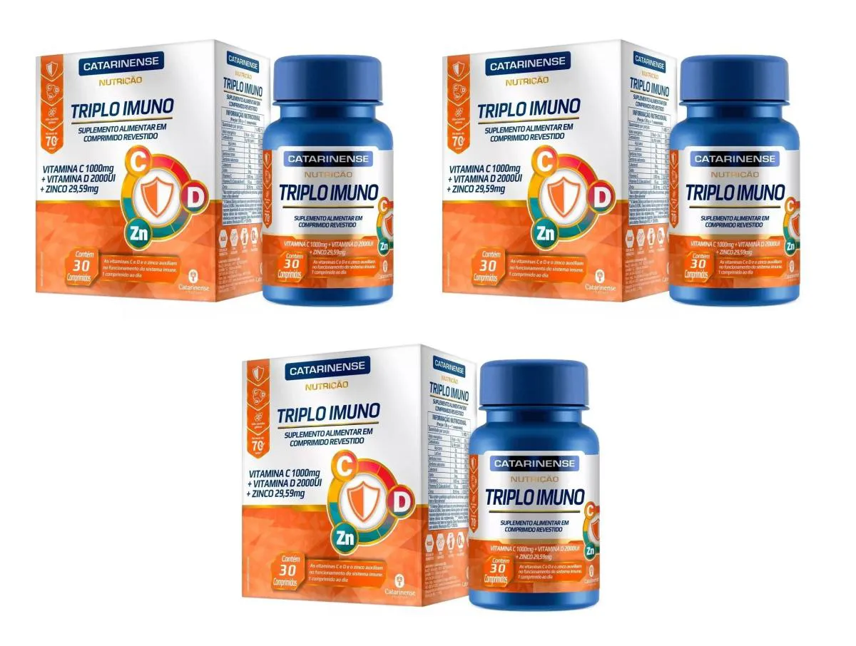 Kit 3 Suplemento Catarinense Triplo Imuno vitamina c D 30cps