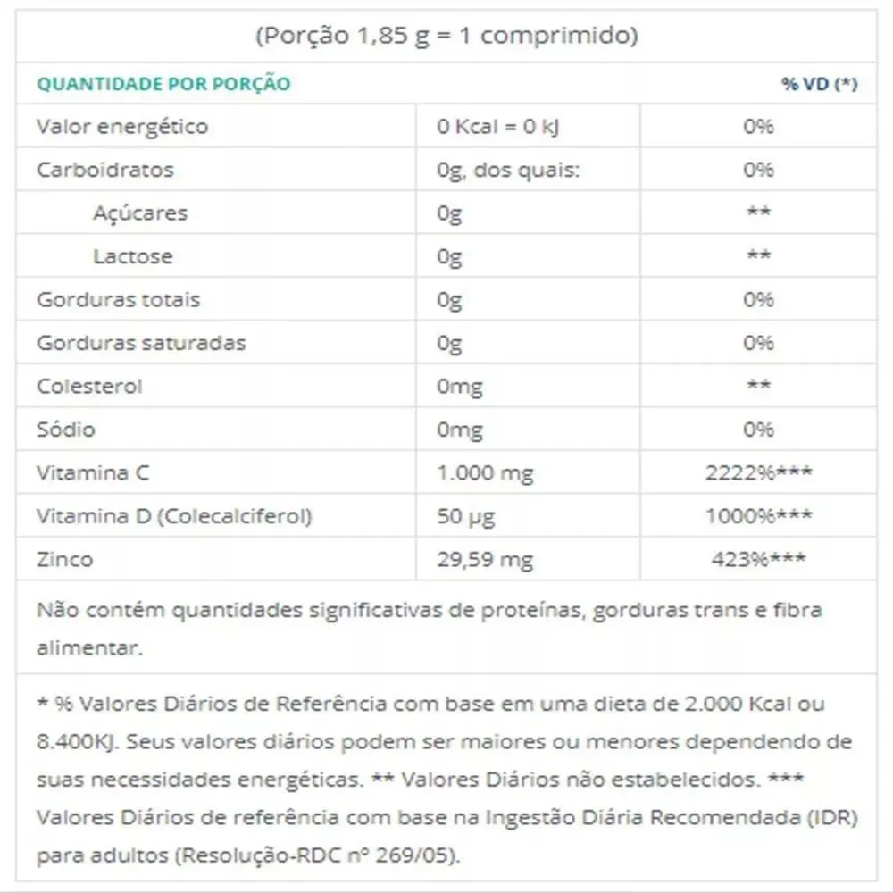 vitamina d 2.000 UI + Zinco 29,59 mg.