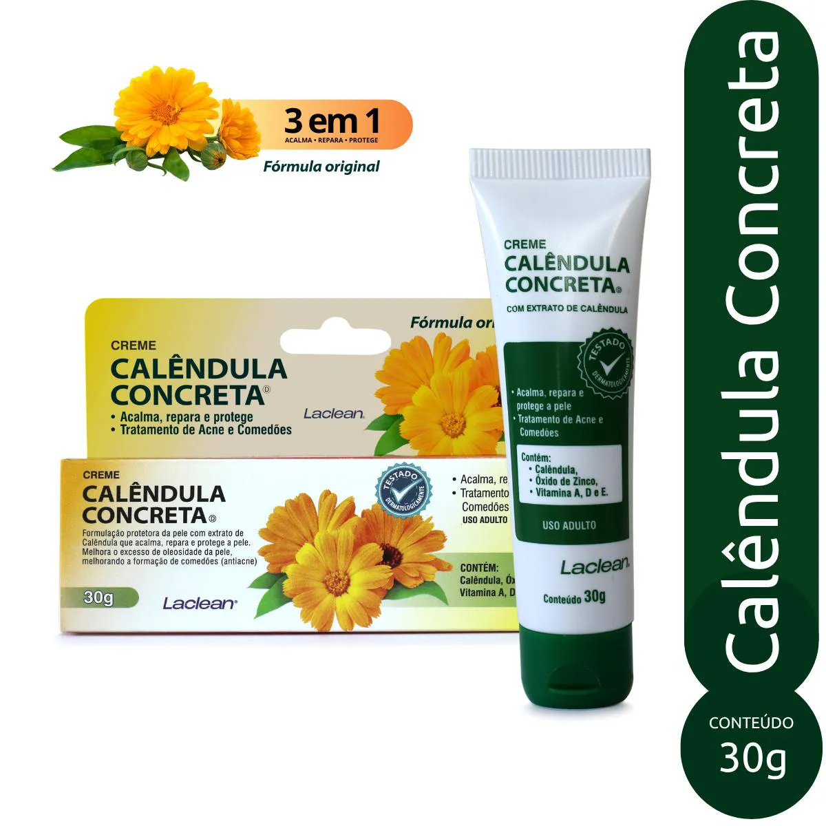 Kit 3 Unidades - Creme Calêndula Concreta 30G Laclean