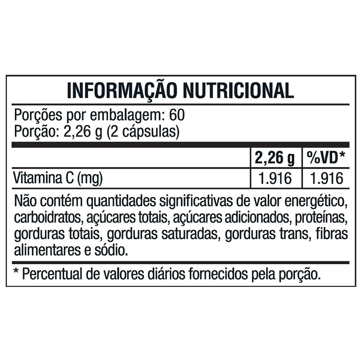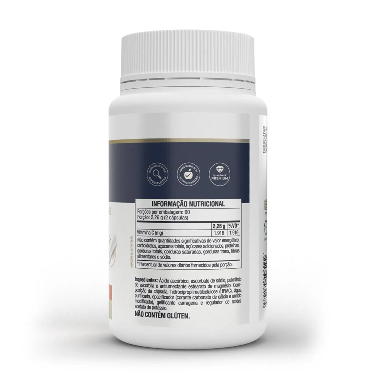 - Selo de Qualidade VLabor. Ingredientes: Ácido ascórbico, ascorbato de sódio, palmitato de ascorbila e antiumectante estearato de magnésio. Composição da cápsula: hidroxipropilmetilcelulose (HPMC), água purificada, opacificador (corante carbonato de cálcio e amido modificado), gelificante carragena e regulador de acidez acetato de potássio. NÃO CONTÉM GLÚTEN.