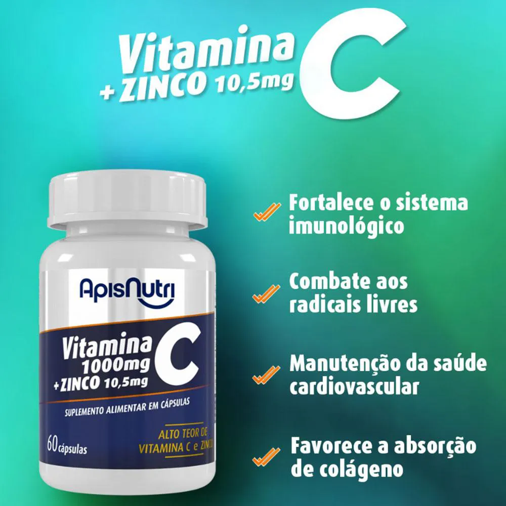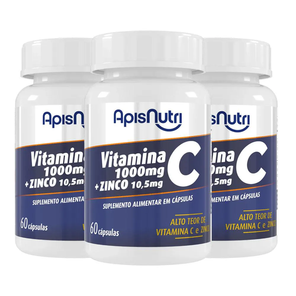 Kit 3 Vitamina C 1000mg + Zinco Quelato 60 Cápsulas Apisnutri