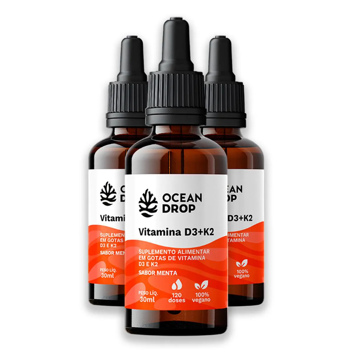 Kit 3 Vitamina D3 K2 30Ml Ocean Drop Sabor Menta