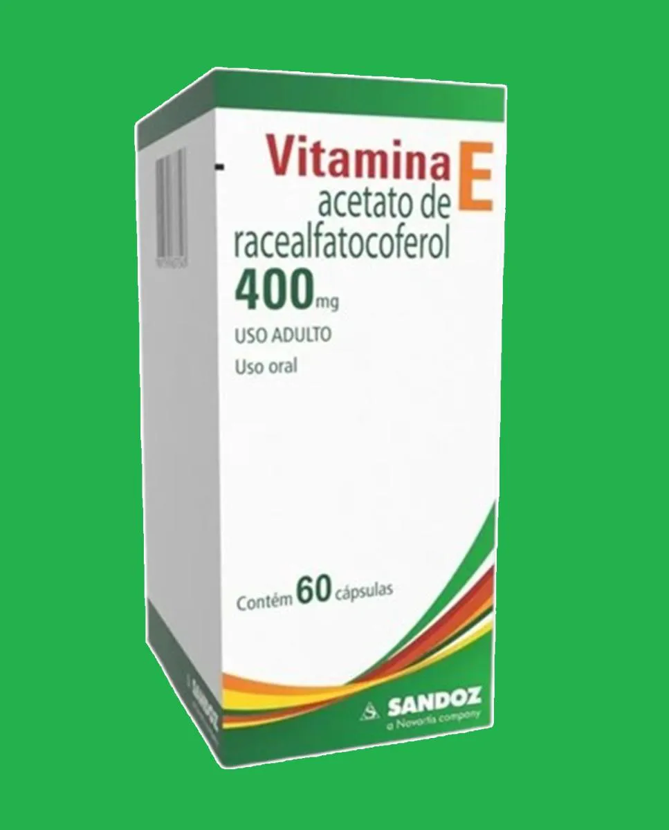 A vitamina E é um medicamento que apresenta ação antioxidante combatendo a formação de radicais livres. A carência de vitamina E provoca o aparecimento de sintomas de miopatia e neuropatia.