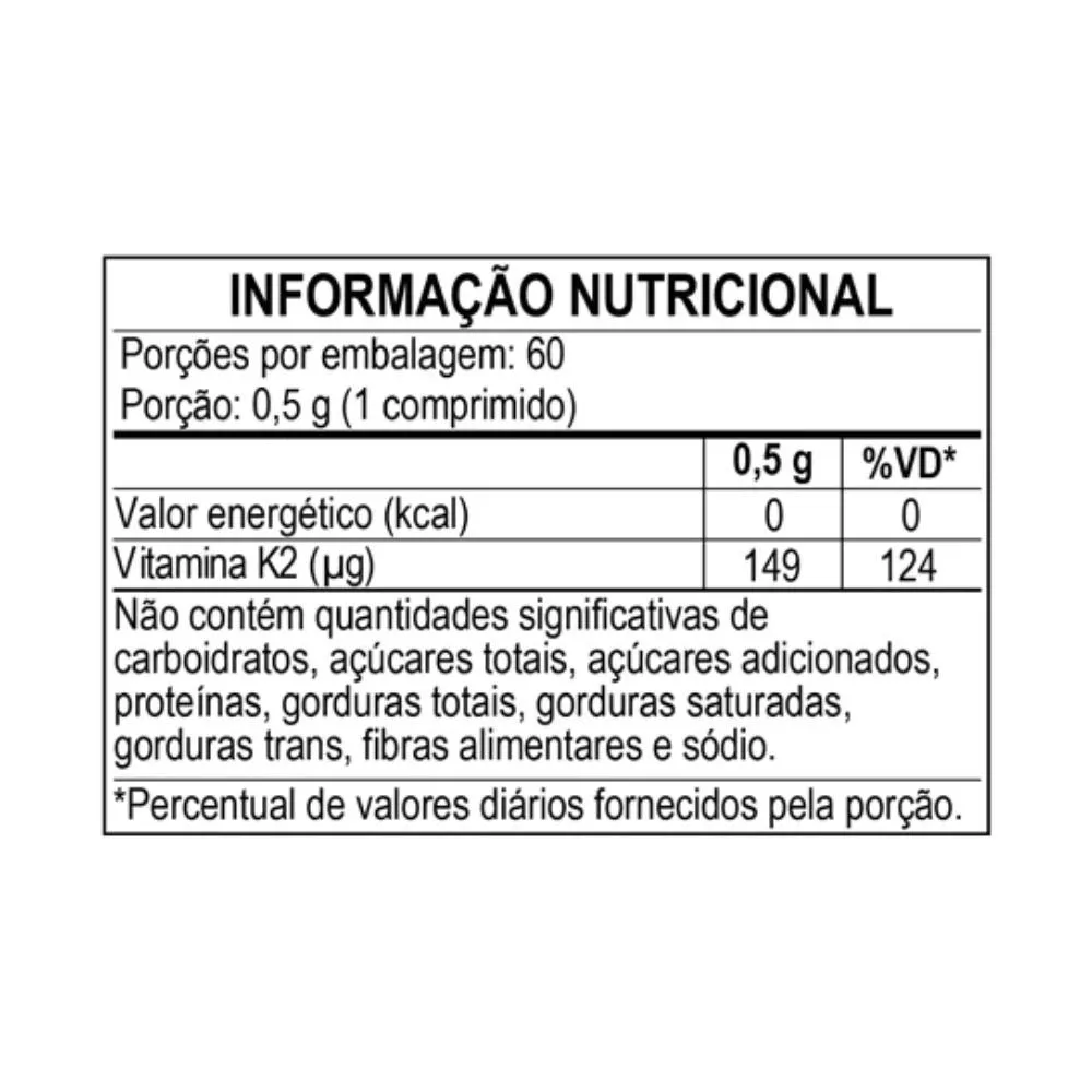 COMPOSIÇÃO: Menaquinona-7 e lubrificante talco.