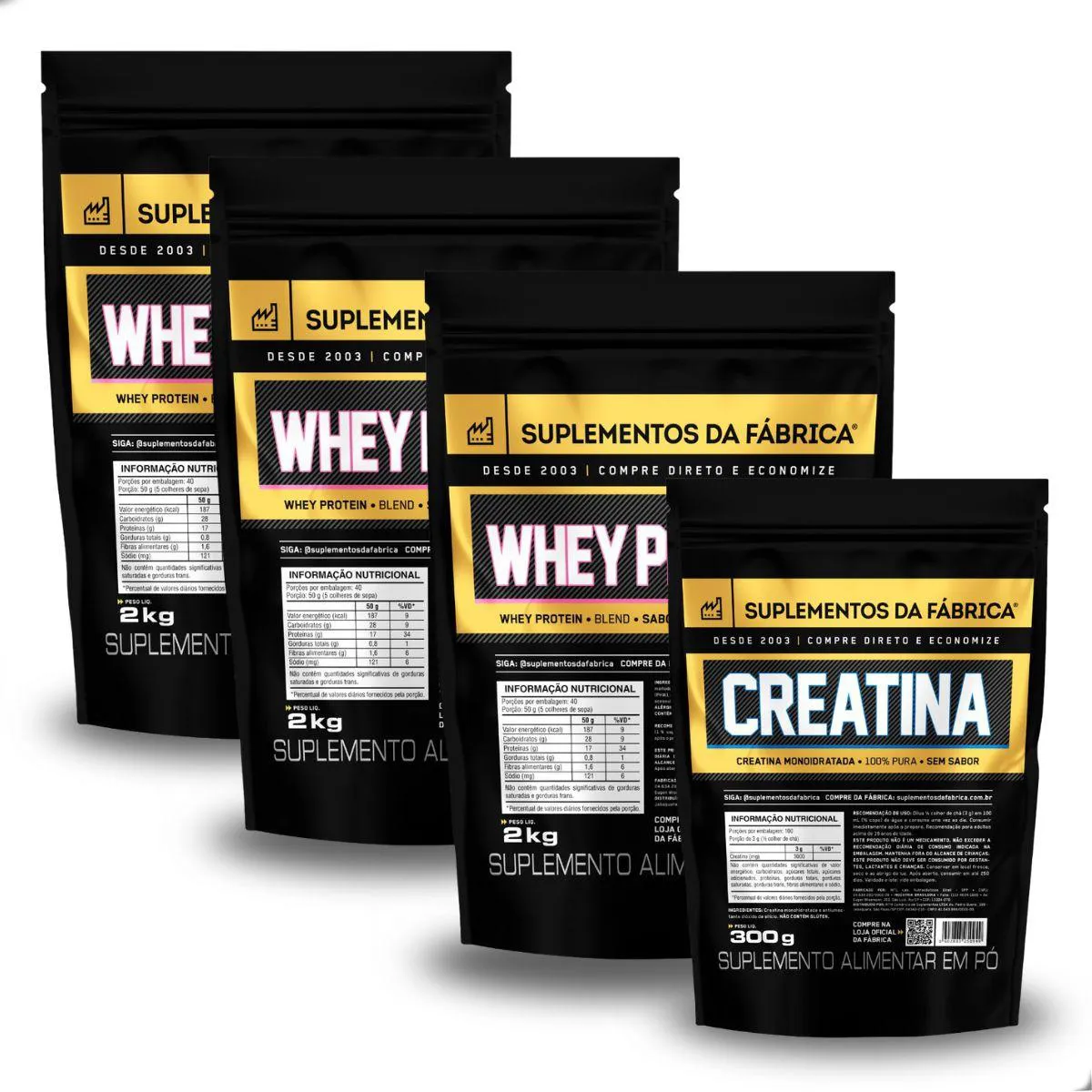 Kit 3 Whey Iso Blend 2Kg + Creatina 300G Suplemento da Fabrica Morango