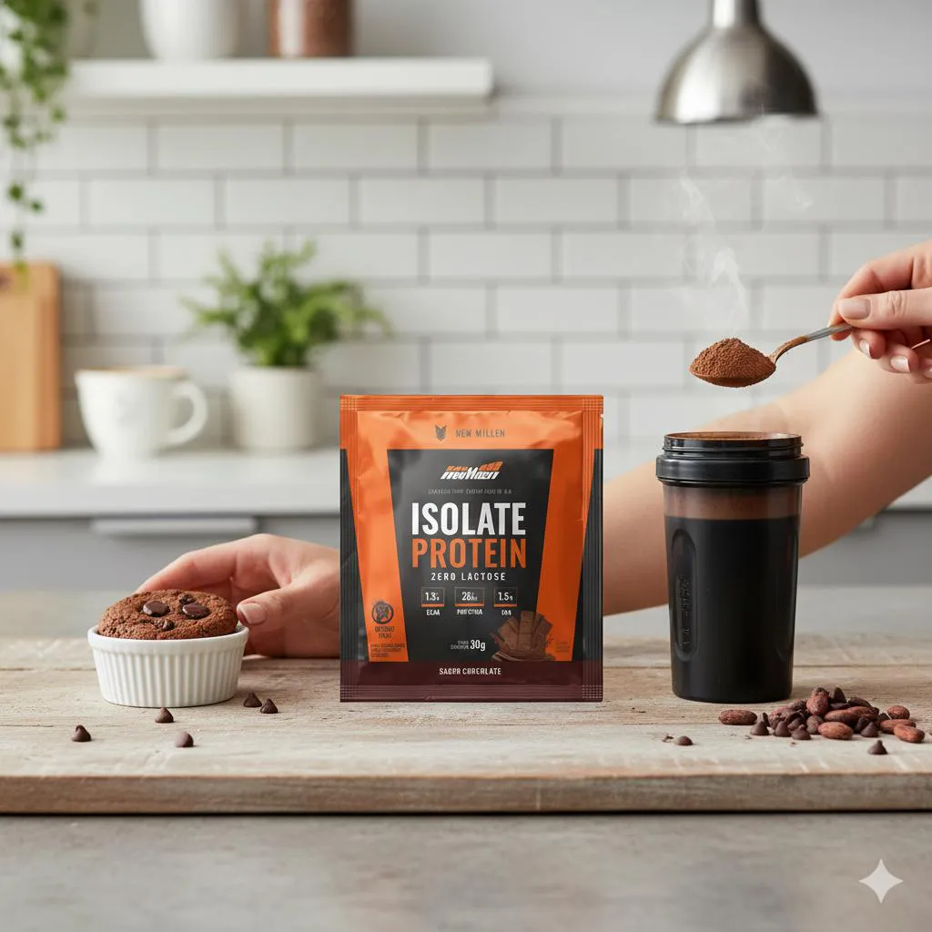 O Isolate Protein é um suplemento alimentar em pó desenvolvido com proteína isolada e hidrolisada de alta qualidade, formulado com proteínas de origem bovina e aminoácidos essenciais. Apresentado em sachês de 30g com sabor de chocolate, o produto é destinado para suporte nutricional na construção e recuperação muscular.
