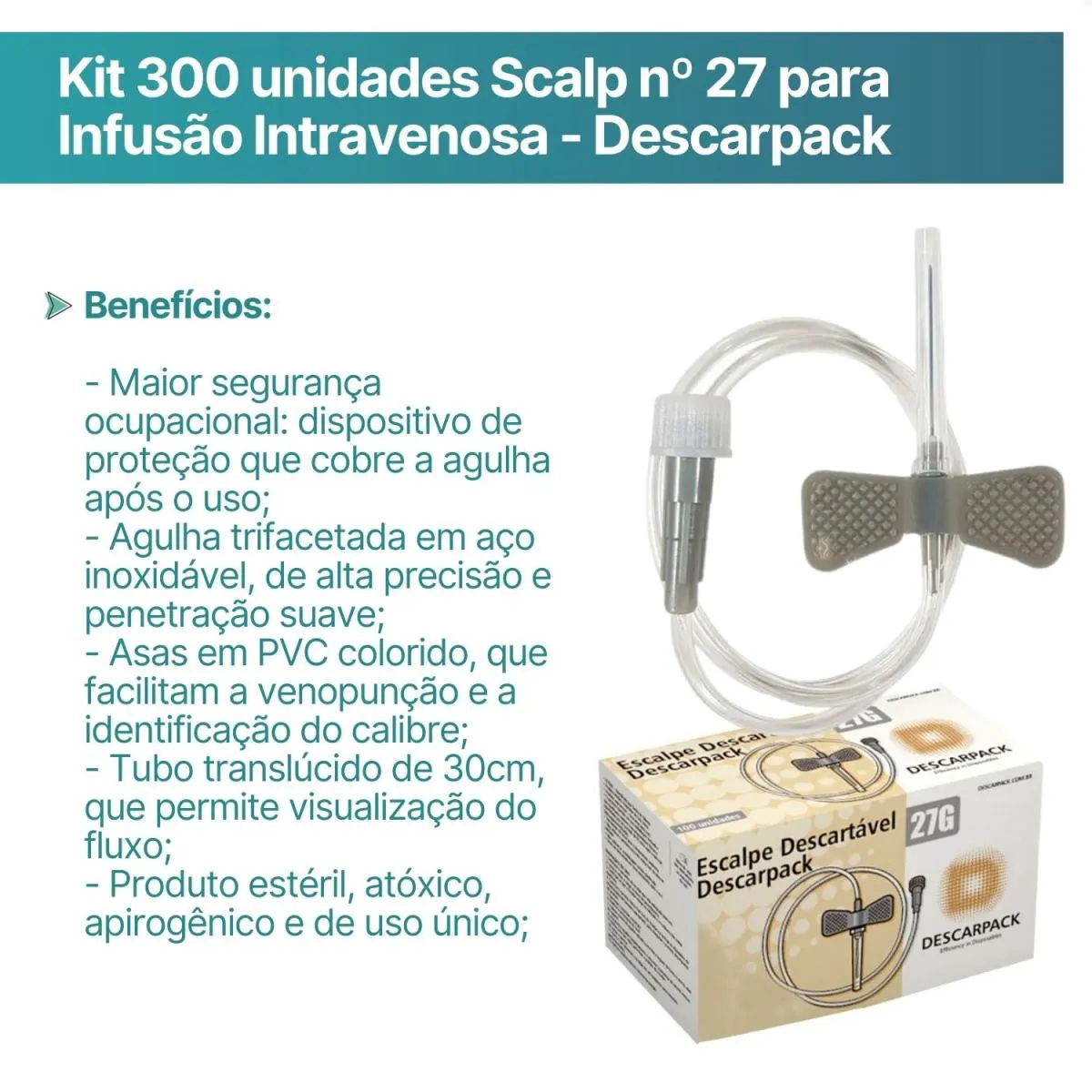 Kit 300 Unid Scalp no 27 para Infusão Intravenosa Descarpack