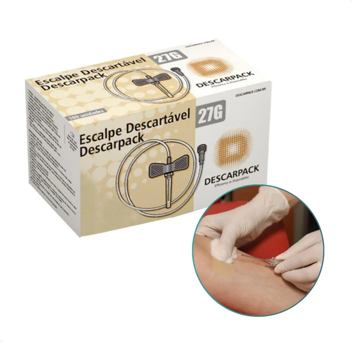 O Escalpe de Segurança Descarpack é um dispositivo médico estéril e descartável, desenvolvido para administração de medicamentos, soluções ou coleta de sangue por via intravenosa.