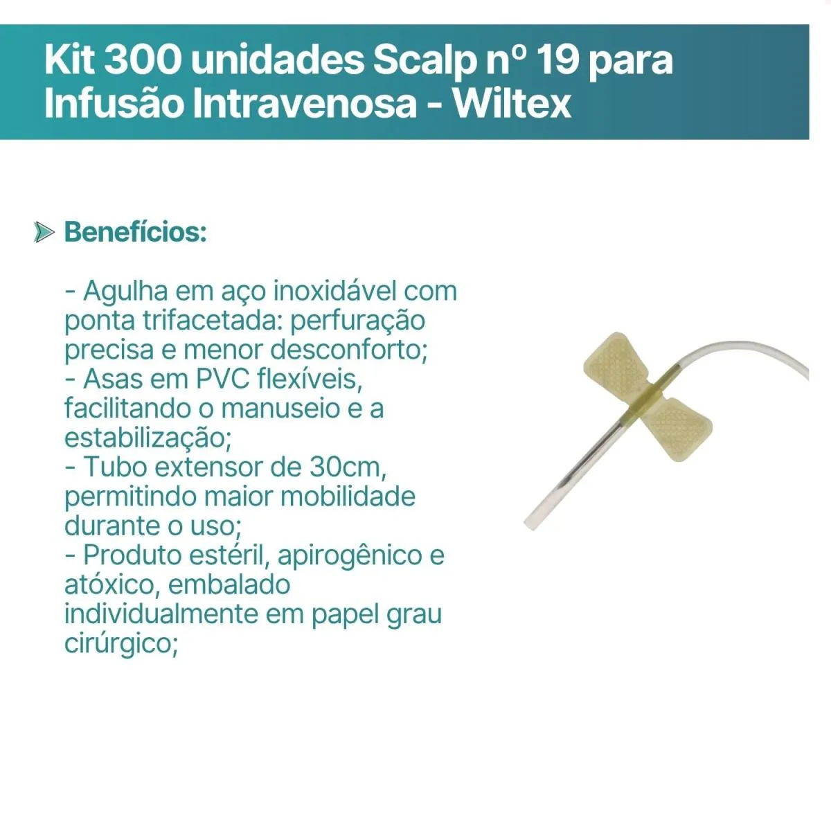 Kit 300 Unidades Scalp no 19 para Infusão Intravenosa Wiltex