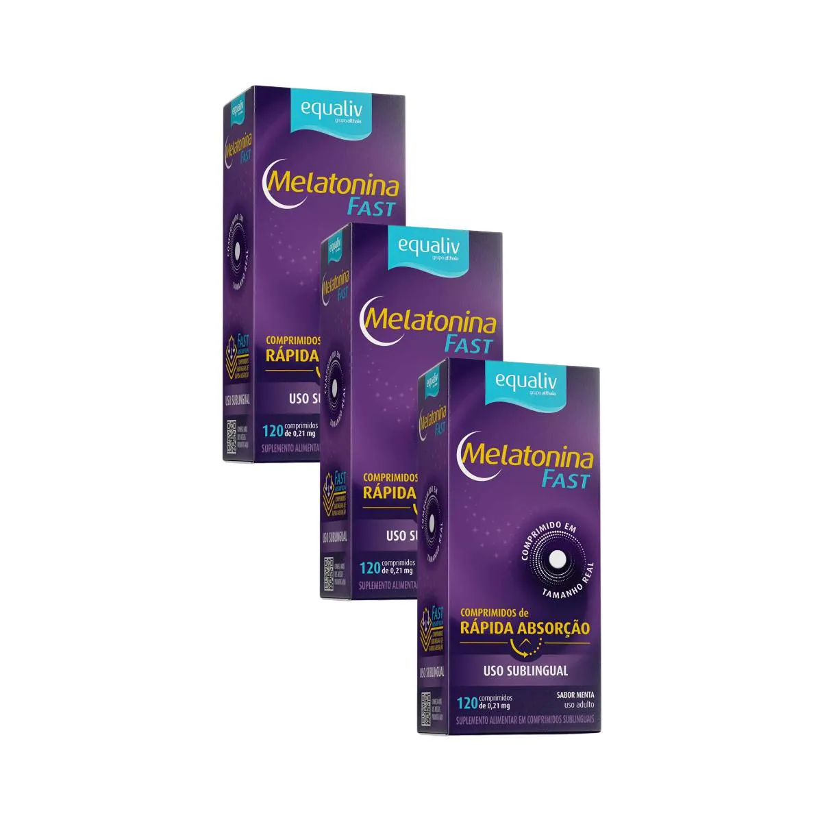 Kit 3un Melatonina Fast com 120 comprimidos - Menta- Equaliv