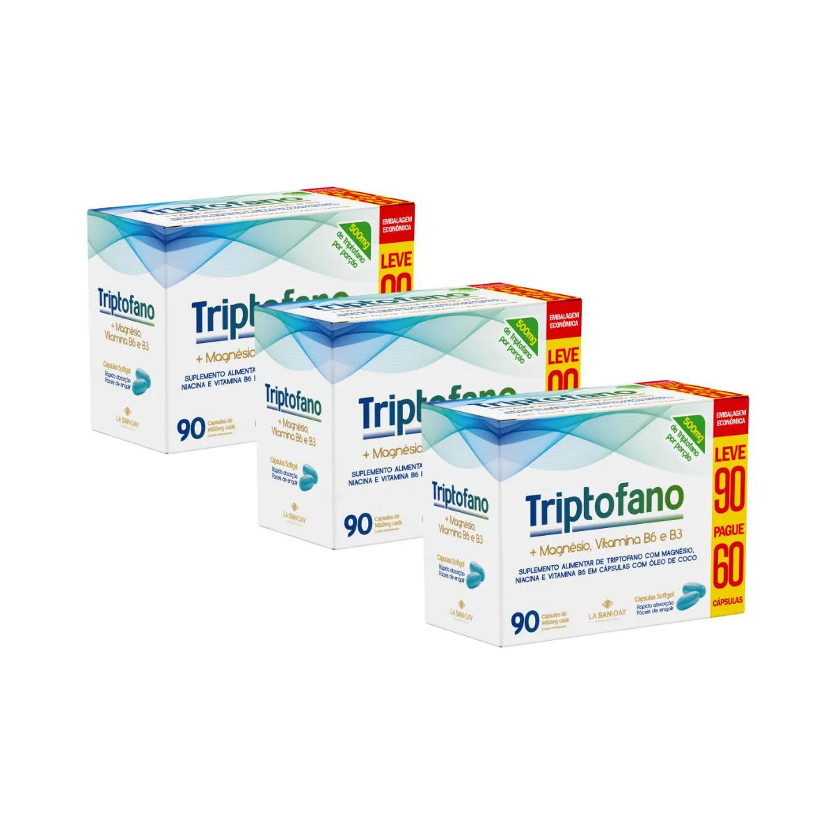 Kit 3Un Triptofano + Vitaminas com 90 Cápsulas - La San Day